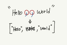 만일 공백 두 칸으로 split을 하게 되면? [ "Hello, "World" ] 이렇게 분리된다.