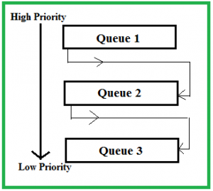 예를 들어 어떤 큐에는 우선순위가 비교적 높아야하는 입출력 집중 프로세스가 삽입될 수 있고, 어떤 큐에는 우선순위가 비교적 낮아도 괜찮은 CPU 집중 프로세스가 삽입될 수 있다.