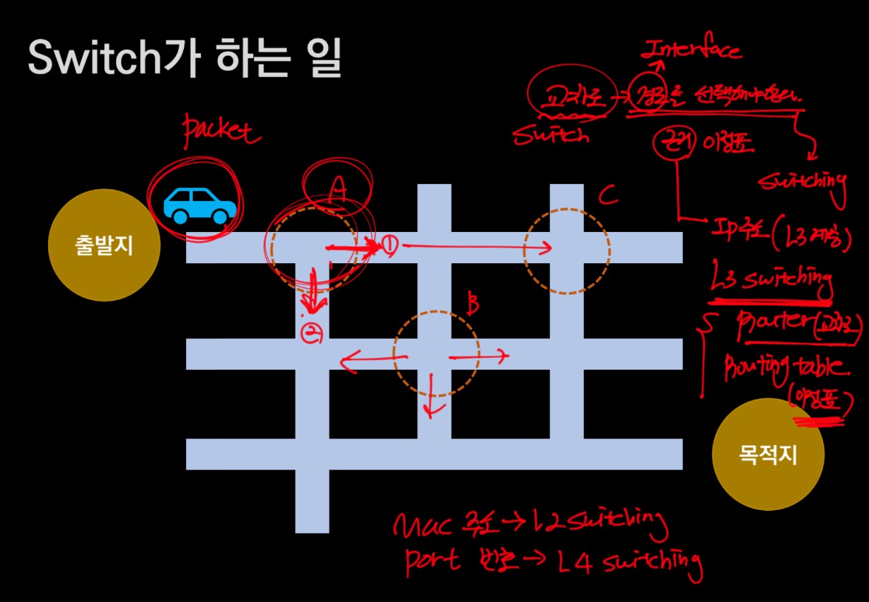 차량을 패킷에 비유했을 때, Switch는 Interface를 선택해야하는 교차로가 된다.
