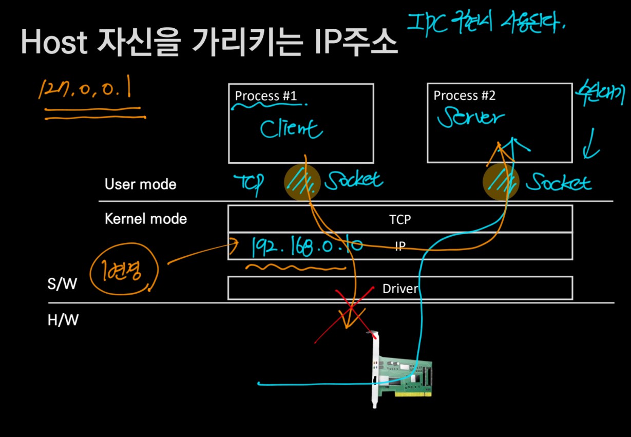 따라서 Loop back Address를 사용해서 (127.0.0.1) 다른 프로세스와의 네트워크 통신이 가능한 것이다.