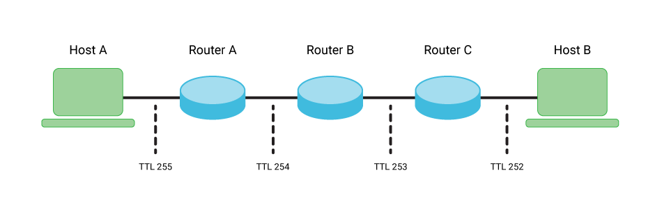 TTL(Time To Live)는 IP Header에 명시되어있다. 패킷이 Router를 따라 목적지까지 잘 이동한다면 문제가 없겠지만 여러가지 이유로 목적지까지 이동하지 못할 수도 있다. 이때 패킷을 제거하지 않으면 떠돌이 패킷들이 네트워크 세상을 가득 메울 것이다. 그렇기 때문에 TTL이 등장했는데 Hop이라는 구간을 지나면 TTL이 하나씩 차감된다. 모든 TTL이 차감되었음에도 패킷이 목적지까지 도달하지 못했다면 해당 패킷을 지워주게된다.