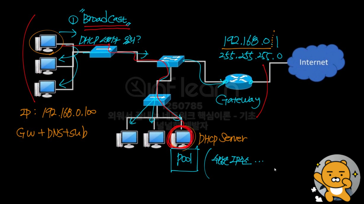 쉽게 설명하면 인터넷 사용 설정을 자동화시켜주는 것이라고 생각하면 된다. 내가 사용할 IP주소를 서버가 알려준다는 것이 핵심이다.