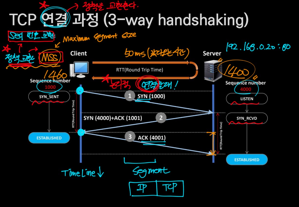여기서 교환되는 정책이란 Sequence의 번호를 교환하는 것과 MSS(Maximum Segment Size)정보를 교환하는 것이다.