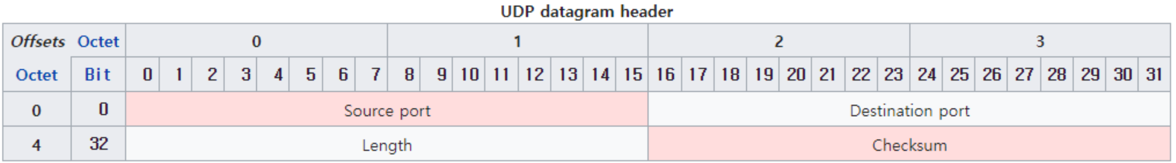 - Source port : 출발지의 포트번호이다. 16bit의 크기를 가진다.