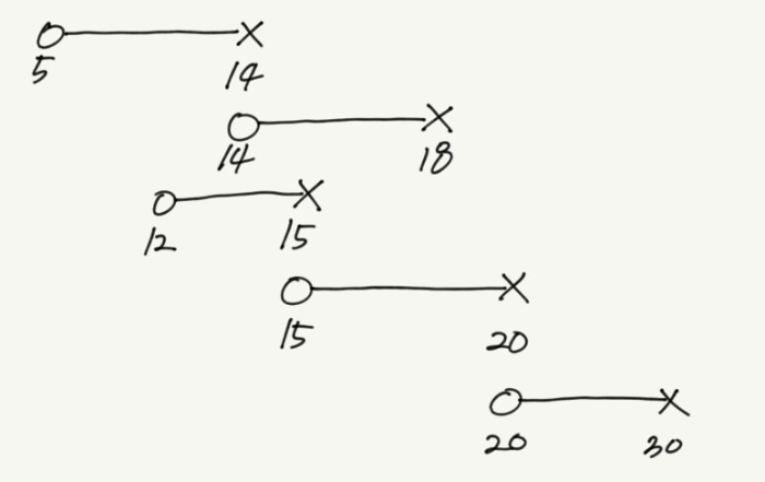 이후 N개의 줄에 Si, Ti가 주어진다. (0 ≤ Si < Ti ≤ 109)