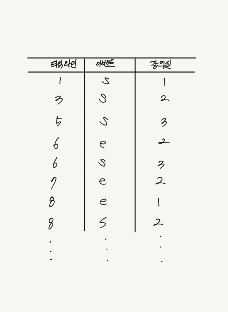 그리고 시간을 기준으로 오름차순을 정리해 타임라인을 완성하면 다음과 같다.