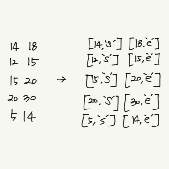 s는 오는 시간을 의미하고, e는 가는 시간을 의미한다.