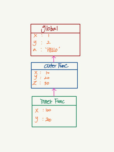 말 그대로 스코프들끼리 체이닝이 되어있다는 것이다. 그림으로 표현해보자.