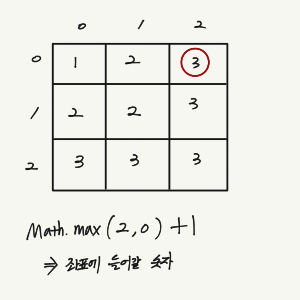 그림과 같이 arr[ i ][ j ] 좌표에 들어갈 숫자는 i와 j의 최댓값에서 1을 더한 값이다.